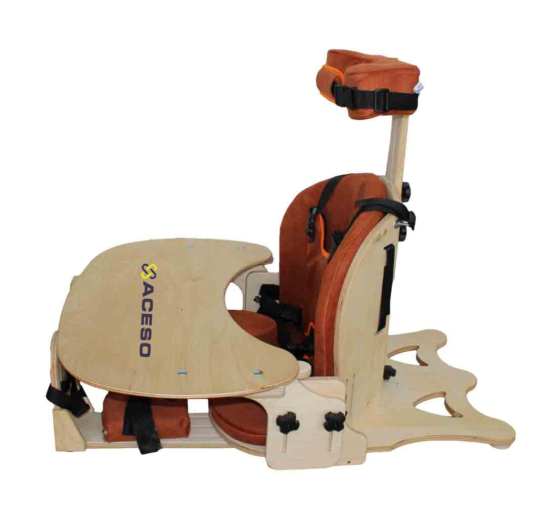 Широкие возможности дополнительной комплектации: возможность установки подлокотников, регулируемого столика и столика с тренажёрами для развития мелкой моторики, независимо регулируемых креплений для ног, подголовника.