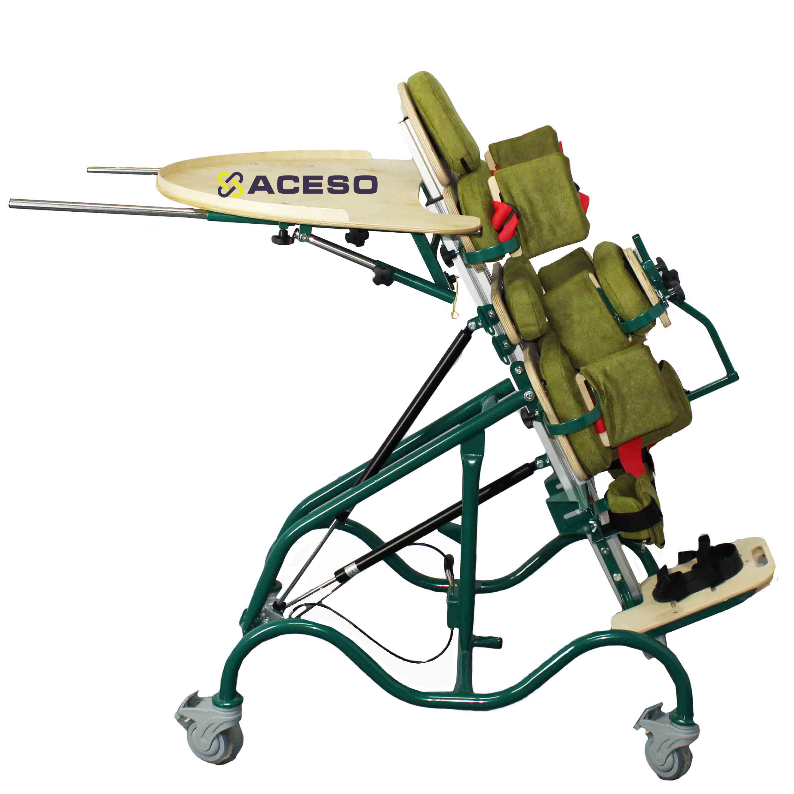 Опора функциональная для стояния для детей-инвалидов "Я МОГУ!", исполнение ОС-220, представляет собой многофункциональное устройство - вертикализатор на металлической раме, позволяющий проводить вертикализацию ребенка в положении «лежа на животе» - с поддержкой спереди (использование в качестве «пронационной рамы») переводить из горизонтального в вертикальное положение с закреплением в любом промежуточном положении, используя пневмопривод, обеспечивая поддержку правильной позы и удерживание ребенка в необходимом положении по углу наклона.