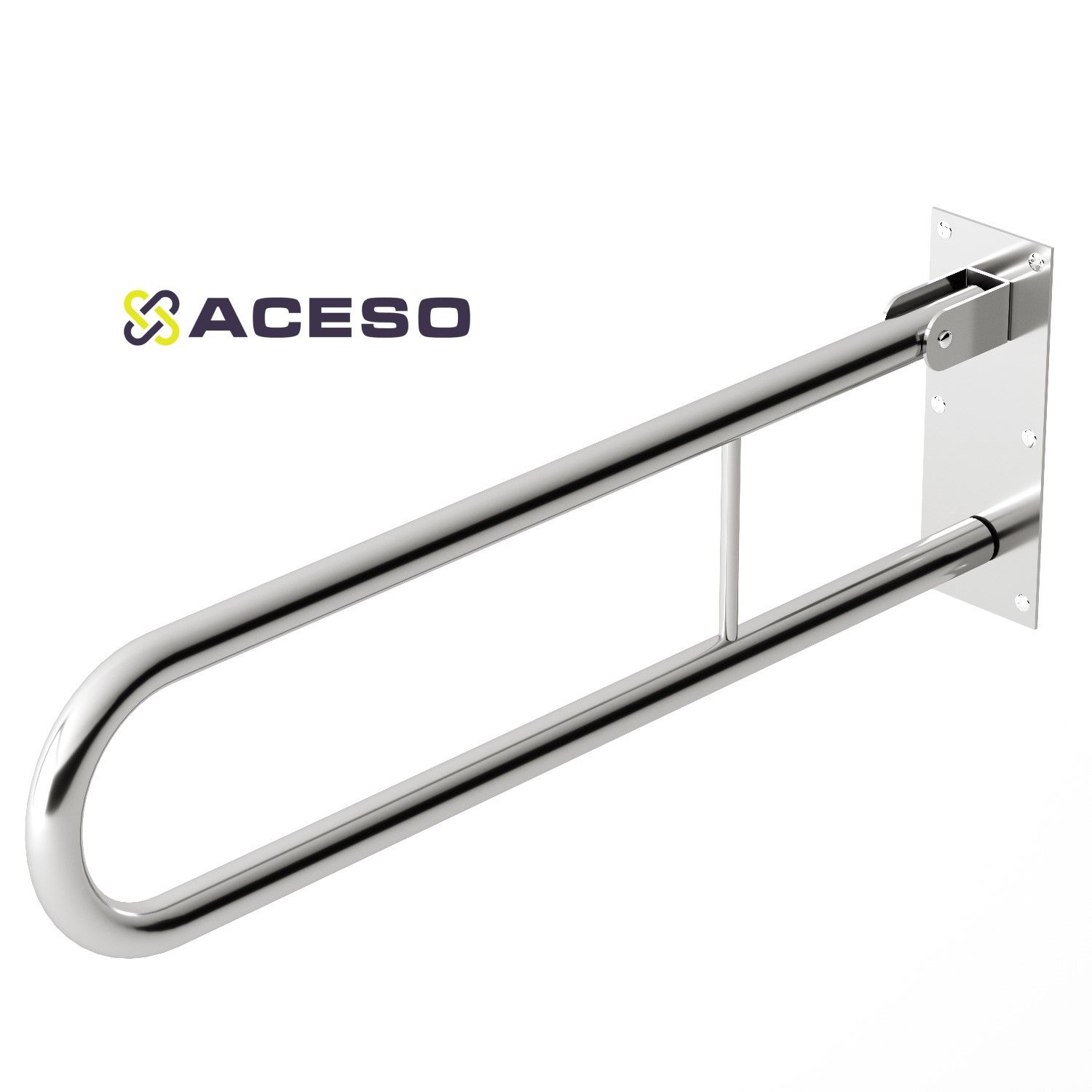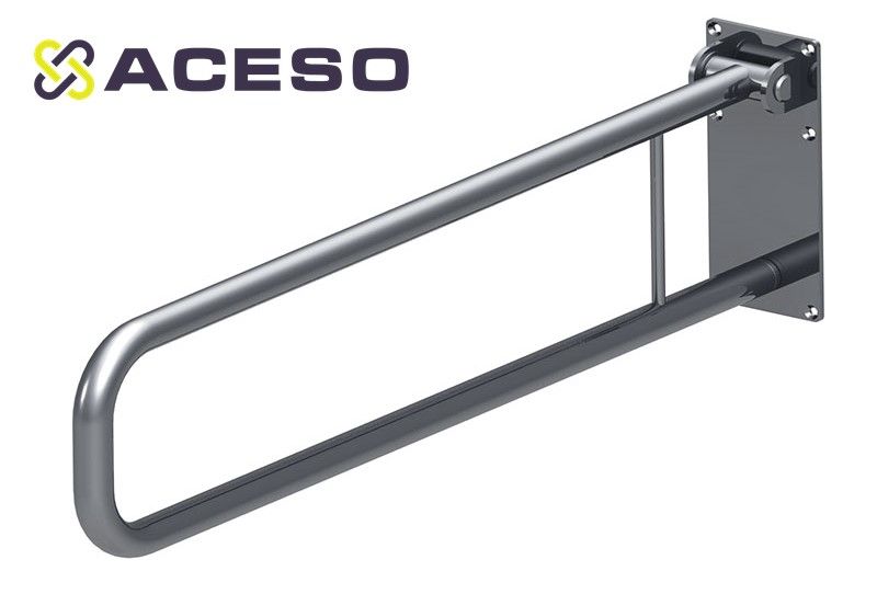 Поручень откидной для унитаза, длина 800 мм настенный для унитаза двойной с фиксатором к стене