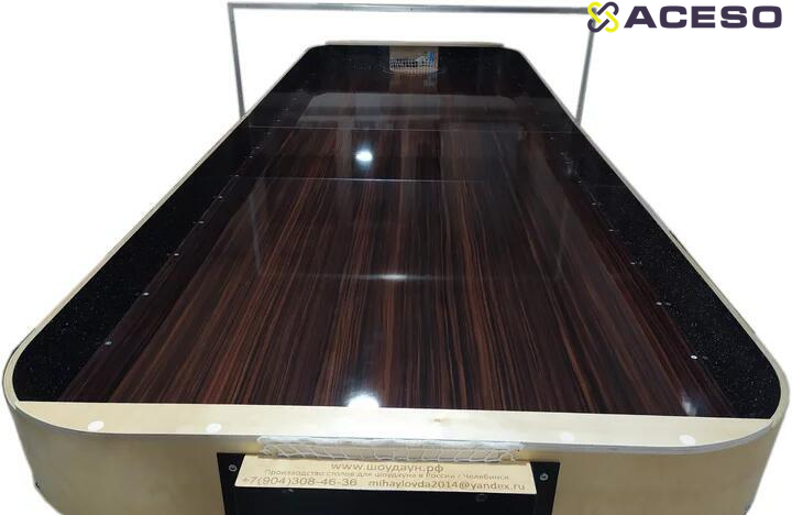 Стол предназначен для профессиональной игры в настольный теннис для слепых (шоудаун). Он изготовлен в виде модульной сборно-разборной конструкции благодаря которой его удобно перемещать к местам проведения соревнований. Стол абсолютно соответствует международным требованиям правил Шоудауна.