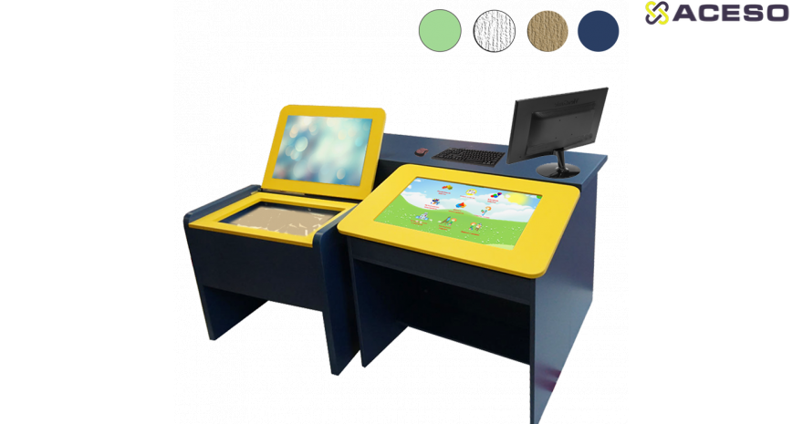 - Интерактивный стол с большим антивандальным сенсорным модулем и регулируемой столешницей