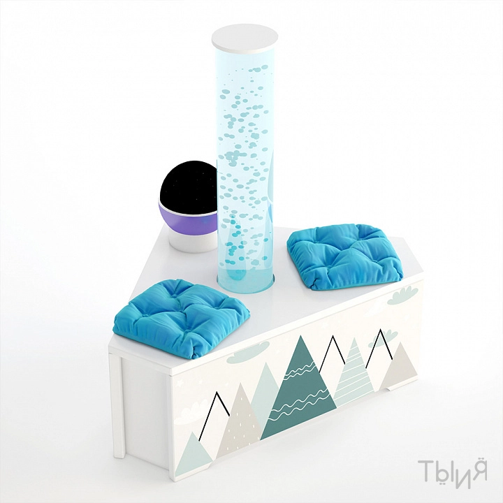 7. Сенсорный уголок "Релаксиум Горы" (арт. СК-030)Компактный вариант комфортного уголка для расслабления и и отдыха. Включает в себя световые элементы и мягкие подушки для создания уютной атмосферы.