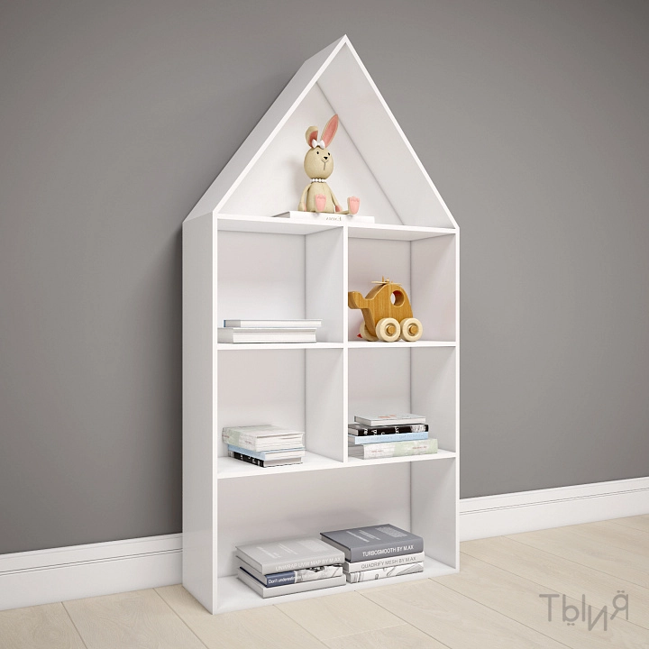 8. Полка-домик "Теремок" (арт. СТ-055)Детский стеллаж для хранения книг и игрушек выполнен из качественного ЛДСП, что гарантирует долговечность и надежность использования.