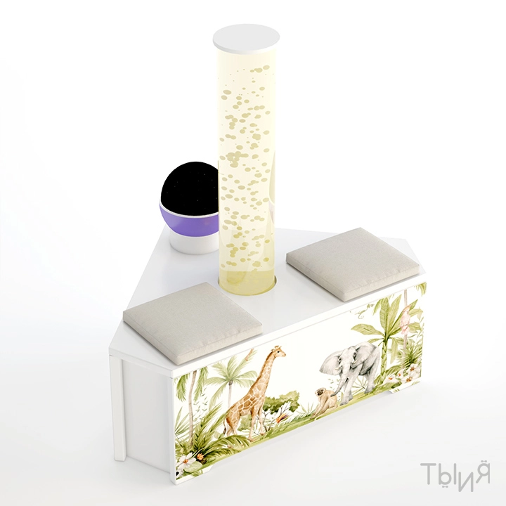 1. Сенсорный уголок "Релаксиум Джунгли" (арт. СК-031)Современное решение для комфортного уголка, созданного для релаксации и отдыха. Дополнен световыми деталями и мягкими подушками, формирующими уютную и тёплую атмосферу.