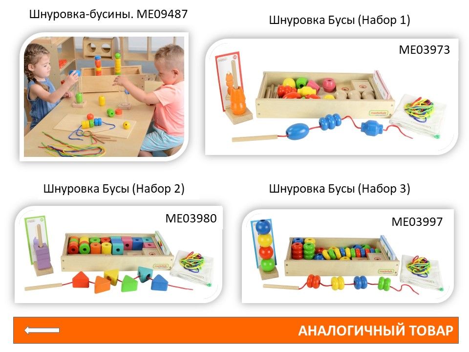 Шнуровка "Пуговицы" (3 формы, 2 размера, 4 цвета, 48 шт., 4 шнурка, 10 карточек).