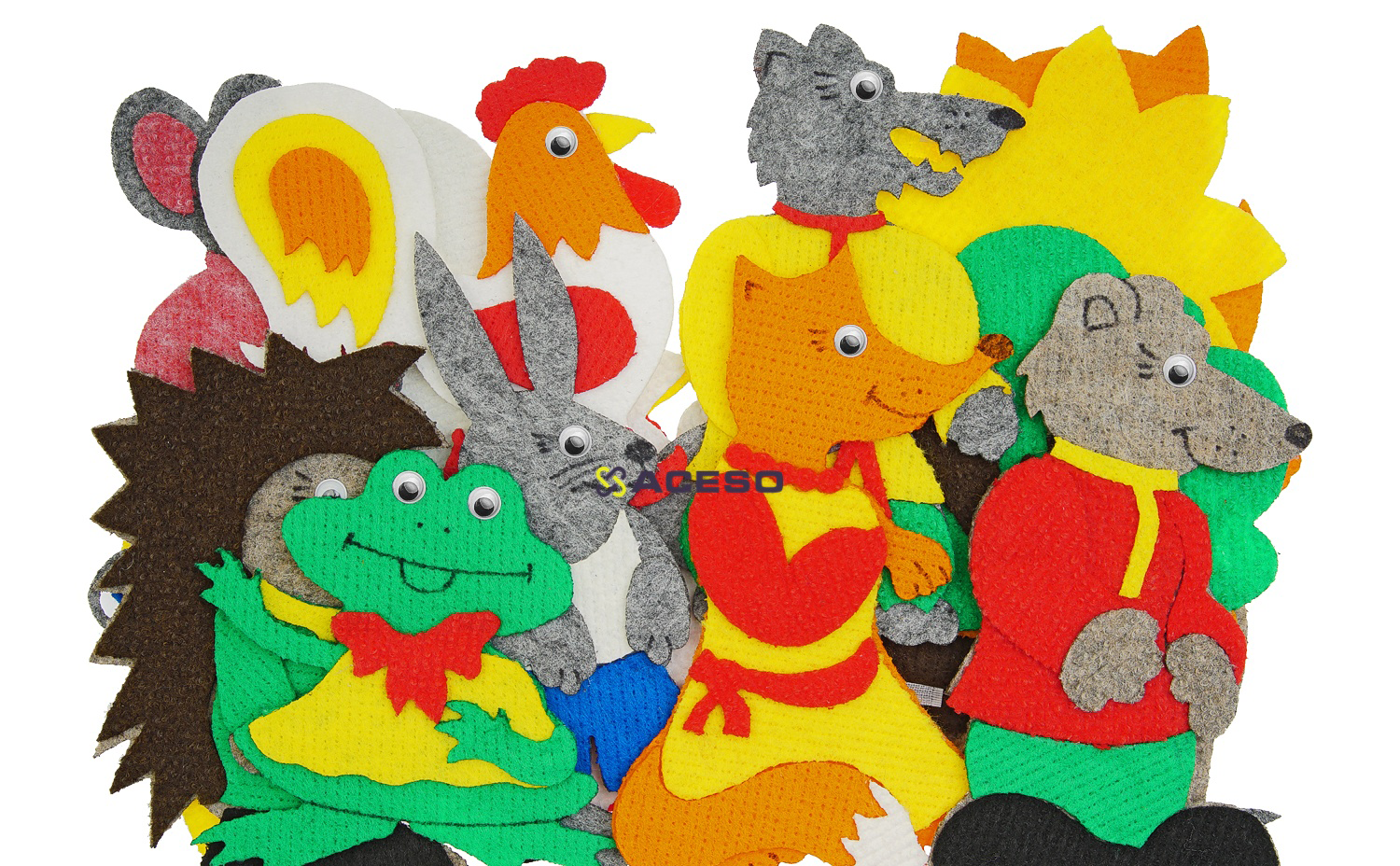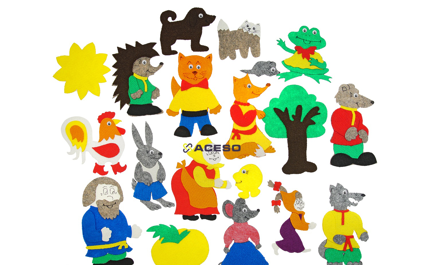 Набор фигурок кукольного театра на плоскости из ковролина даёт возможность показать представления сразу из 5 сказок (репка, колобок, теремок, заюшкина избушка, Маша и медведь), кроме того, фигурки можно использовать для сюжетных, дидактических игр, развивая речь, логику, мелкую моторику, фантазию. Пособие одобрено методистами и с успехом применяется в детских садах.