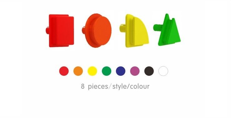 Набор состоит из 256 разноцветных колышек в 8 цветах (красный, оранжевый, черный, желтый, синий, зеленый, фиолетовый, белый) в 4-х геометрических формах (круг, квадрат, треугольник, квадрант). Являются дополнением к STEM стене, как к стационарной, так и передвижной. С их помощью можно легко создавать различные узоры и рисунки. Отличный инструмент для развития мелкой моторики, воображения, логического и творческого мышления.