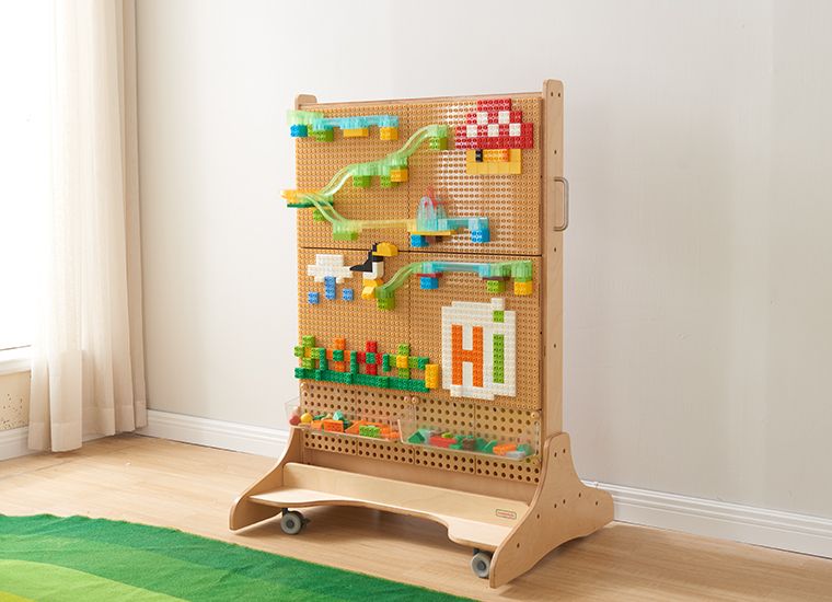 Игровой набор представлен в виде конструктора, состоящего из 135 разноцветных блоков разных размеров. Является дополнением к STEM-стене и к STEM-столам.