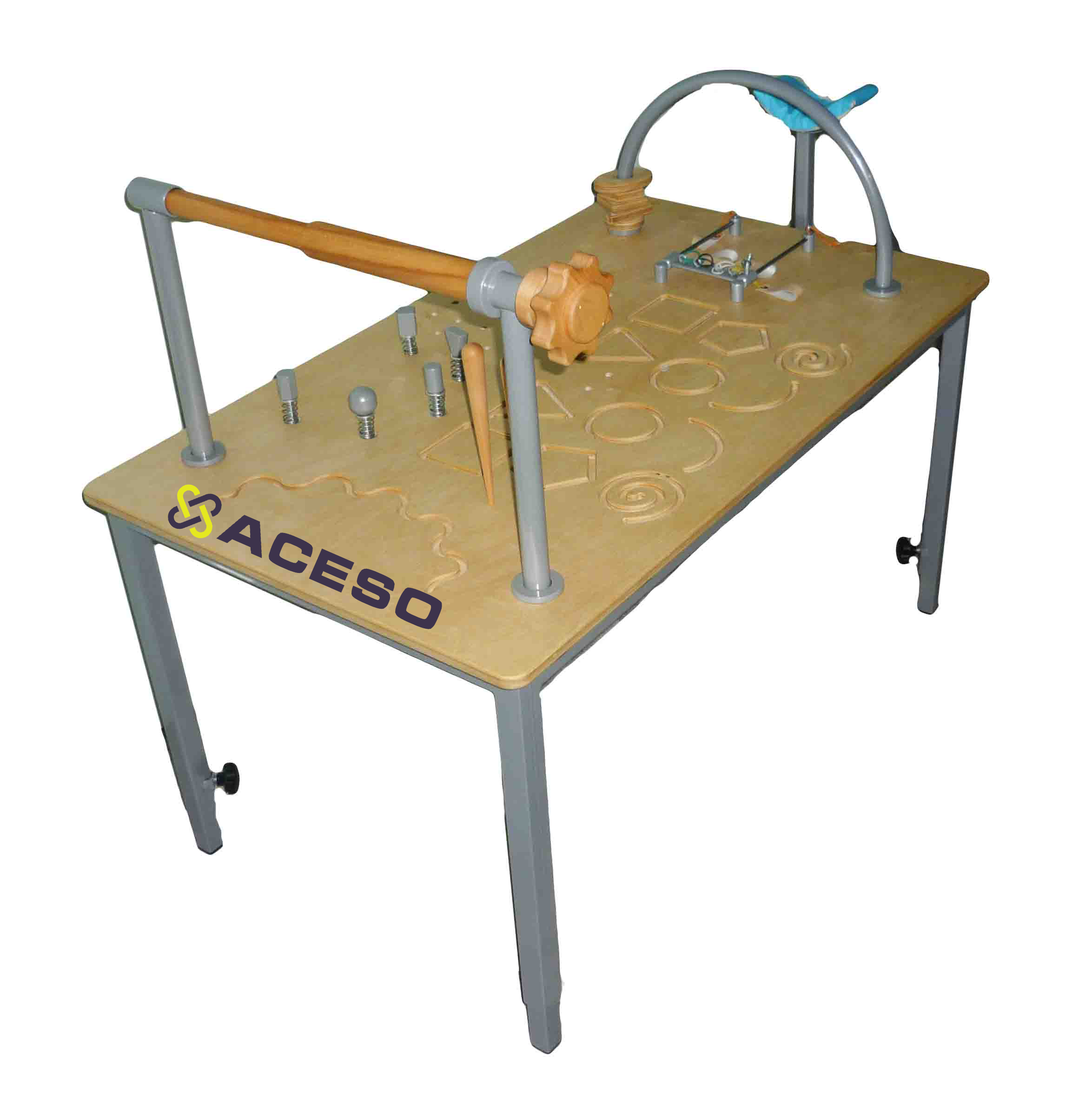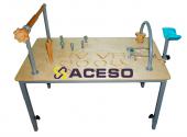 Стол с размещенными на столешнице различными тренажерами для развития силы мышц верхних конечностей, механотерапии и развития мелкой моторики. Основное назначение: для специальных упражнений, восстанавливающих и корректирующих движения верхних конечностей от плечевого до пястно-фаланговых суставов. Предназначен для работы со всеми возрастными группами пациентов - от детей (от 5 лет) до гериатрических пациентов.
