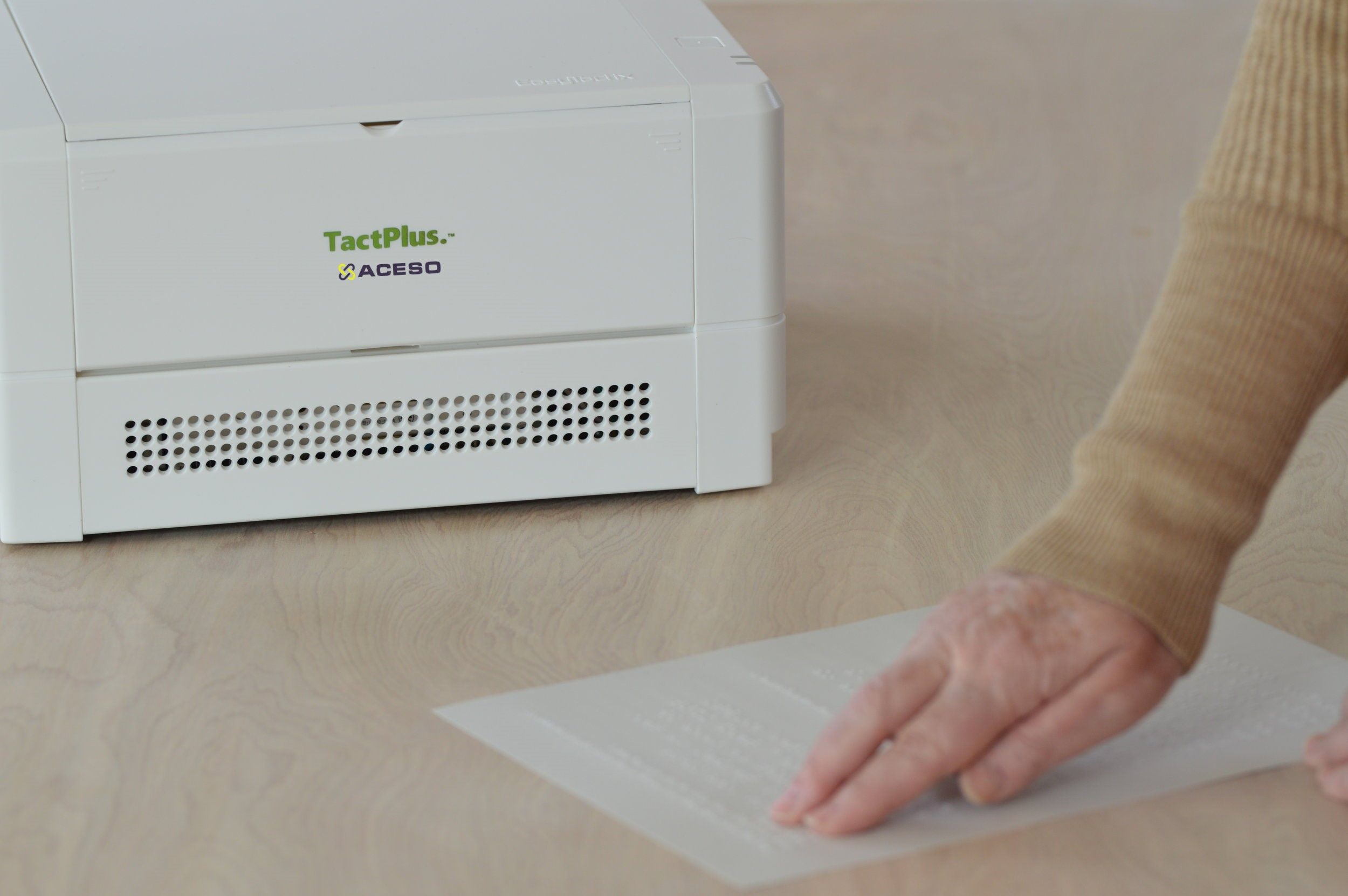 В TactPlus применяется технология термопечати. Печать осуществляется вспениванием специальной капсульной бумаги методом термопечати. Это означает, что для печати текста и изображения на одной странице их не требуется наносить отдельно.
