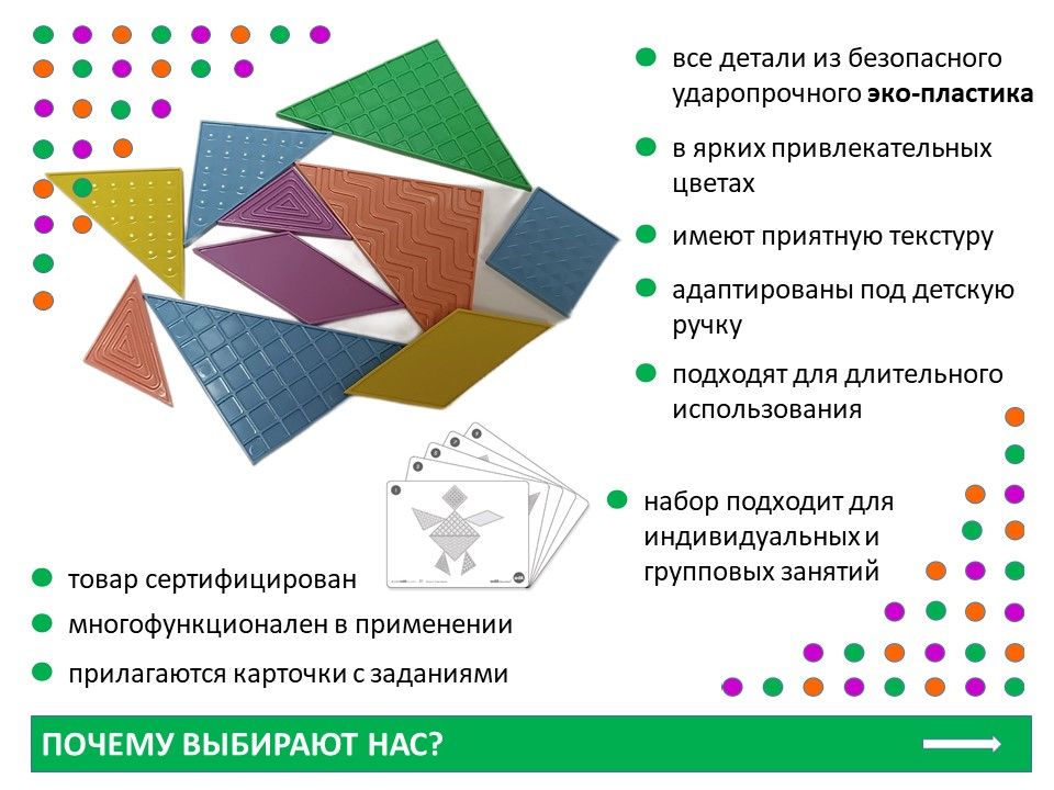 Танграм тактильный (35 дет. Эко-пластик). Набор с карточками