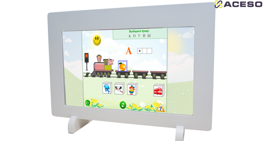 Это уникальное оборудование, в отличие от имеющихся в данный момент на рынке моделей, имеет антивандальный монитор (диагональю 24 дюйма) с сенсорной поверхностью, которая дает возможность ребенку самому производить действия с помощью прикосновений к экрану, уроки при этом получаются гораздо интереснее и ярче, а значит, ученики лучше воспринимают информацию.