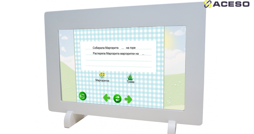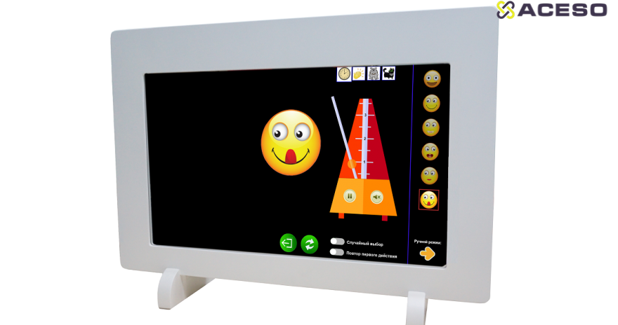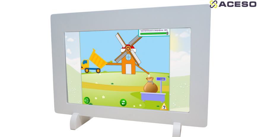 Логопедическое зеркало оснащено встроенной камерой и микрофоном, кроме того, наличие камеры открывает возможность управления заданиями с помощью жестов.