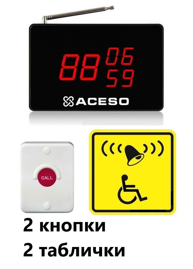 Универсальная система вызова персонала арт. APE510.2 - система вызова помощи инвалидам: 2 кнопки вызова, 2 таблички, 1 приемник