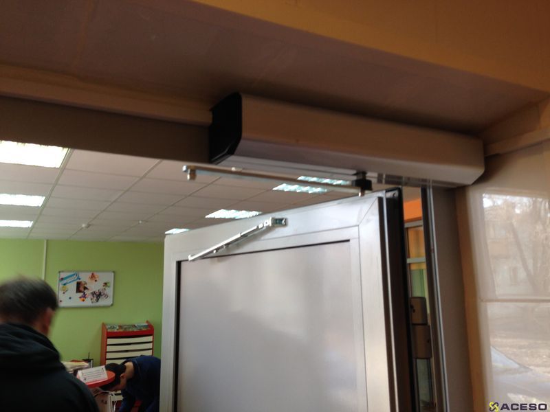 - Подсоединение проводной кнопки и расположение её рядом с дверью позволит легко открывать дверь самостоятельно, или даст возможность персоналу дистанционного открывания двери.