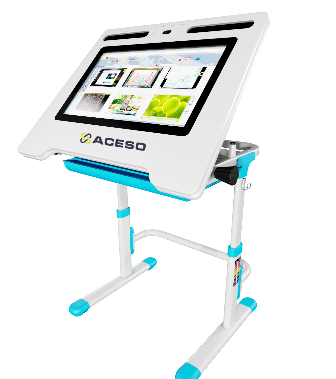 Интерактивная парта UTS Desk Kids с сенсорным дисплеем (21,5”) подходит для индивидуальной работы с детьми в детских садах или младших классах начальной школы (от 2 до 10 лет). Вы можете менять высоту парты и стульчика, который идет в комплекте, чтобы детям любого роста было удобно во время занятий. Угол наклона сенсорной панели также можно регулировать, благодаря чему дети с нарушением зрения смогут без проблем выполнять любые задания. Наклон панели следует регулировать и в зависимости от типа выполняемого задания.
