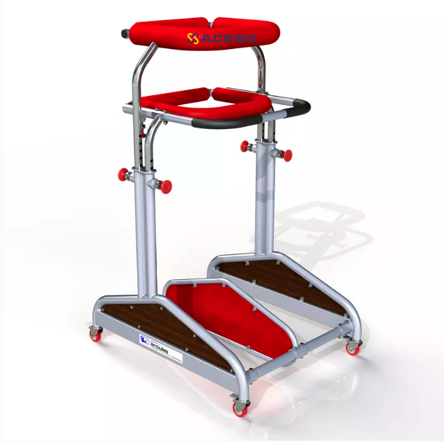 Динамический вертикализатор - реабилитационное устройство предназначенное для применения в процессе интенсивной реабилитации пациентов с парезами (неполным параличом) нижних конечностей и тетрапарезами. Позволяет принимать положение стоя и самостоятельно ходить. Благодаря подвесной обвязке таза и сепаратору нижних конечностей вертикализатор будет особенно ценным при реабилитации пациентов со спастическими парезами нижних конечностей, а также при сопутствующими судорогами бедренных и коленных суставов. Еще одним преимуществом изделия является возможность применения разных типов колес, например колес с блокировкой направления движения или с блокировкой движения вертикализатора назад, что очень помогает пациенту во время реабилитации и обучения ходьбе.