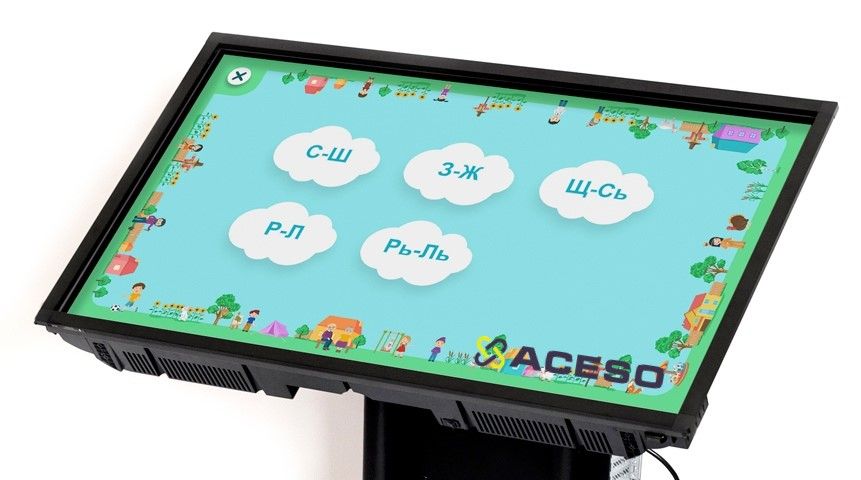 При создании стола учтены физиологические особенности детей, а также структура и особенности логопедической работы. Интерактивный стол имеет предустановленное специальное логопедическое программное обеспечение, направленное на преодоление общего недоразвития речи различного уровня. Задания программы позволяют развить фонематическое восприятие и улучшить лексико-грамматическую сторону речи детей. Программа содержит задания на автоматизацию и дифференциацию свистящих, шипящих и сонорных звуков. Увлекательные задания позволят разнообразить занятия логопеда и повысить мотивацию детей к преодолению речевых нарушений, научат работать как в команде, так и самостоятельно.