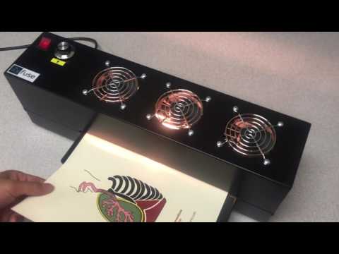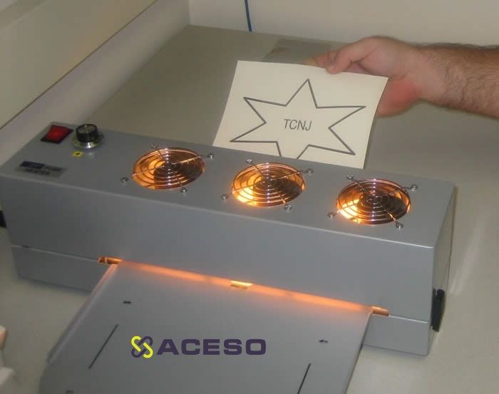 - Лист бумаги с напечатанным изображением помещается в нагреватель. Температуру нагрева можно отрегулировать.