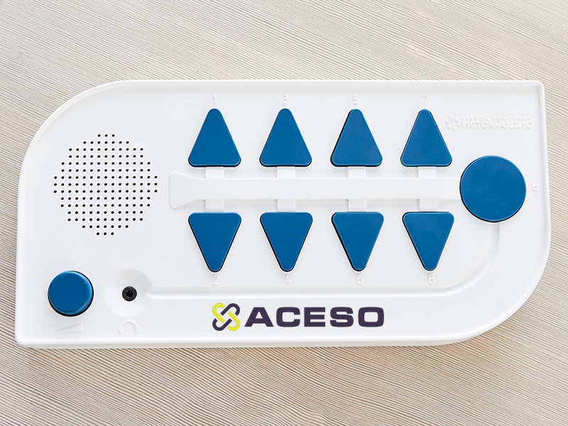 Корпус устройства выполнен из металла. Для облегчения идентификации устройства слепыми и слабовидящими пользователями, корпус устройства выполнен в форме прямоугольника с закругленными углами. Передняя панель устройства имеет бортик по всему периметру. Каждая кнопка на передней панели устройства имеет рельефное цифровое обозначение на корпусе устройства, а нажатие на кнопку сопровождается звуковым сообщением. На передней панели устройства располагаются следующие кнопки: для выбора цифры класса, для выбора буквы класса, для выбора дня недели, для выбора номера урока. Устройство оснащено громкоговорителем.